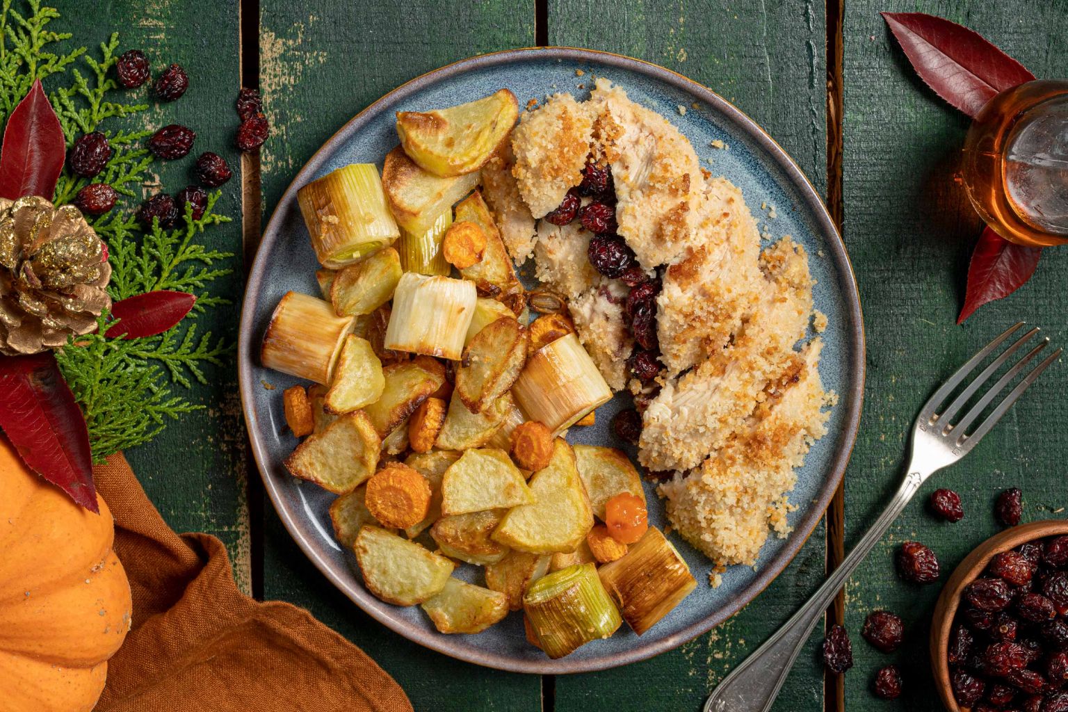 FILETS DE POULET EN CROÛTE AUX CRAMBERRIES ET LÉGUMES RÔTIS 8💙